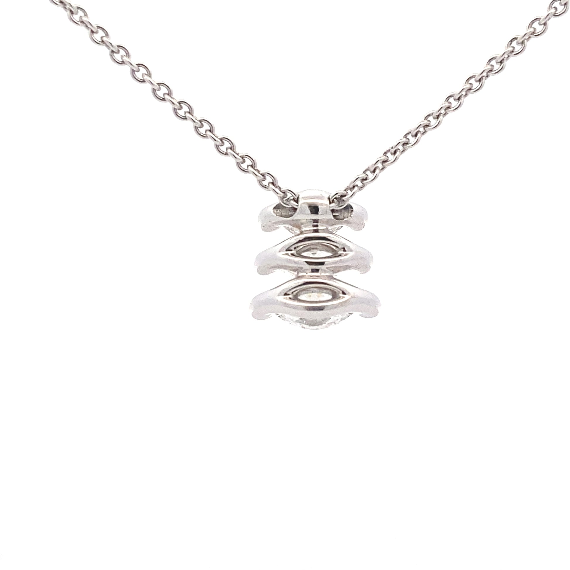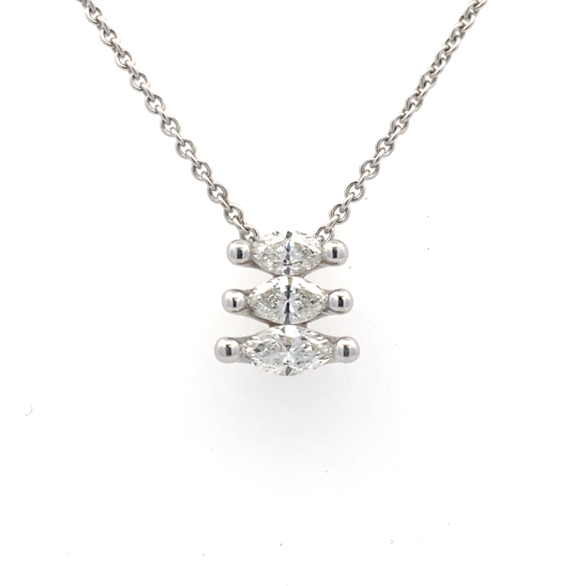 Showcase elegance with this Marquise Shaped Diamond Fancy 3 Stone Pendant. Crafted from 18ct white gold, three graduated marquise diamonds dazzle with a total weight of 0.68cts. This stunning piece exudes sophistication and is perfect for adding a touch of luxury to any outfit.