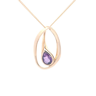 Expertly crafted with a 9ct yellow gold setting, this Pear Shaped Amethyst Fancy Style Pendant exudes elegance and sophistication. Complete with an 18 inch chain, it adds a touch of luxury to any outfit. The stunning pear-shaped amethyst stone offers a bold and regal statement.