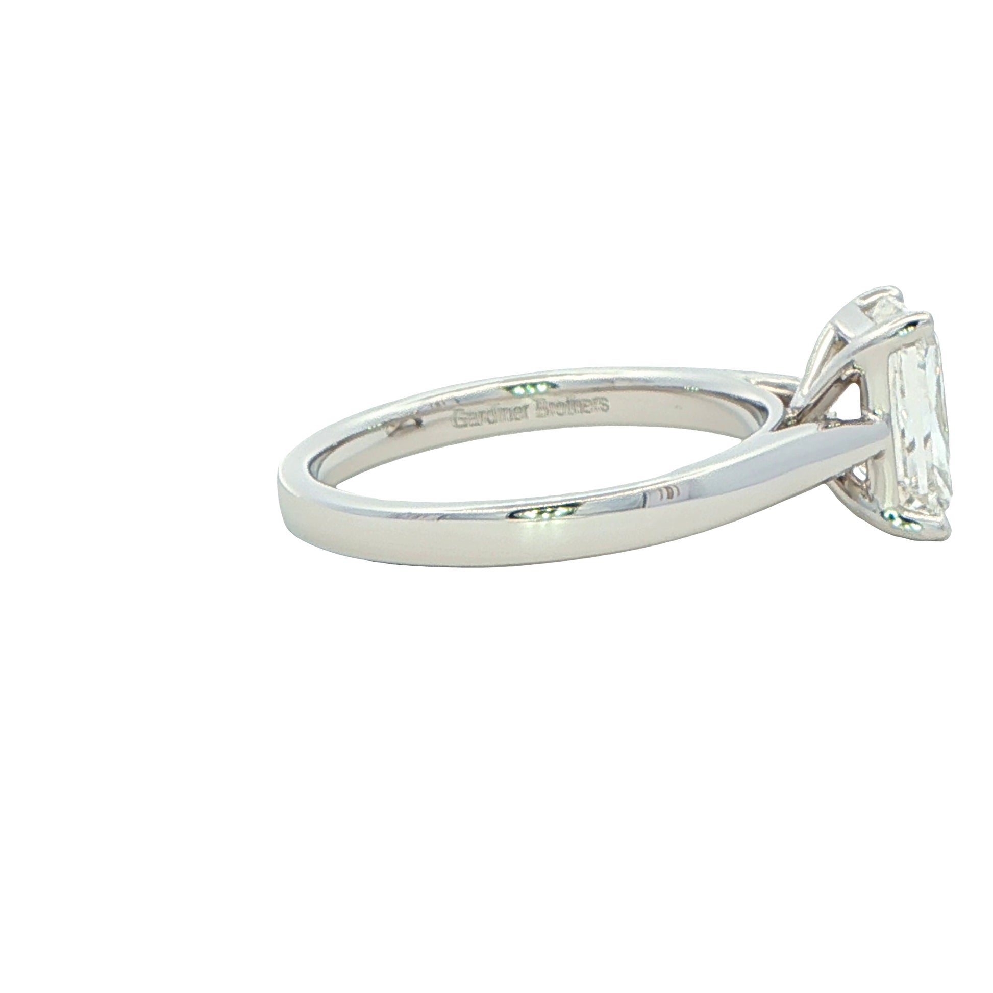 A stunning 2.00 carat radiant cut diamond takes centre stage in this elegant platinum solitaire ring. The brilliant radiant cut maximises sparkle and fire, while the secure four-claw setting showcases the stone's exceptional clarity and colour. Designed with a sleek profile, this ring pairs beautifully with wedding bands, making it an ideal choice for those planning a coordinated bridal set. Timeless sophistication meets contemporary brilliance.