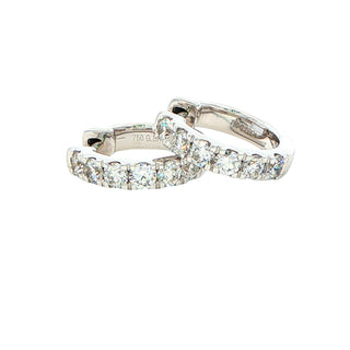 Crafted in exquisite 18ct white gold, these 14mm hoop earrings feature expertly set round brilliant cut diamonds totalling 0.75 carats. Their refined design combines classic elegance with sparkling fire, offering a sophisticated accessory suitable for both everyday wear and special occasions. The precise craftsmanship ensures durability while highlighting the brilliance of each diamond.