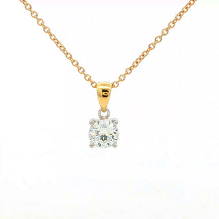 This exquisite solitaire pendant features a 1.00ct round brilliant cut diamond expertly set in a four-claw white gold setting, enhancing its brilliance and fire. Crafted from 18ct yellow gold, the pendant hangs elegantly on an adjustable yellow gold chain, allowing for versatile styling. Its sophisticated design highlights the diamond's natural sparkle, making it an enduring symbol of elegance and refinement. Perfect for both everyday wear and special occasions.