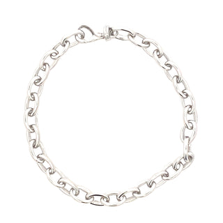 Crafted from 9ct white gold, this oval link bracelet offers a refined and durable design. Measuring 19cm in length, it provides a comfortable fit suitable for everyday wear or special occasions. Its solid links ensure lasting strength while maintaining a sleek, elegant appearance. Ideal for those seeking a timeless accessory with expert craftsmanship.