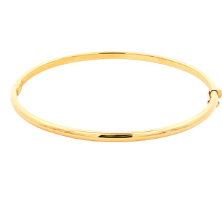 This classic 9ct Yellow Gold 3mm "D" Shape Bangle adds sophistication and elegance to any ensemble. Crafted with a smooth solid gold profile and a secure hinged bangle, it is the perfect piece for formal and casual occasions.
