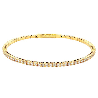 This elegant 18ct yellow gold bangle showcases 1.02 carats of diamonds set in a sophisticated tennis style arrangement with secure four-claw settings. The flexible design allows comfortable movement and everyday wearability, adapting gracefully to your wrist. A timeless piece that combines classic craftsmanship with refined luxury, perfect for those who appreciate enduring elegance and quality gemstone jewellery.