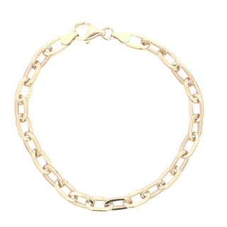 Crafted from 9ct yellow gold, this 19cm bracelet features oblong links with an expert blend of plain and patterned designs. Its alternating link style offers a refined texture and visual interest, making it a sophisticated accessory for everyday wear or special occasions. The durable construction ensures lasting elegance and comfort on the wrist.
