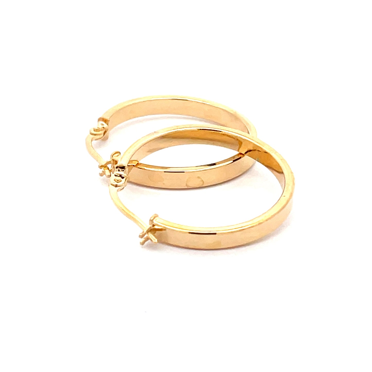 These Yellow Gold Square Profile Hoop Earrings are crafted from 9ct gold for a luxurious look. With an elegant 21mm hoop size, they are perfect for making a stylish statement.